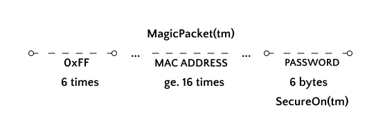 The MagicPacket(tm) that is sent over the network, IP header aside, contains the following payload: