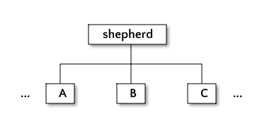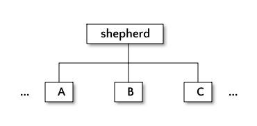 Here is a diagram of the disposition of the containers, where "shepherd" is the container that will update containers "A", "B", "C", etc.