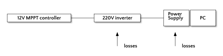 even without any consumer) and then the energy is fed into a PC that downscales the current to whatever the PC needs.