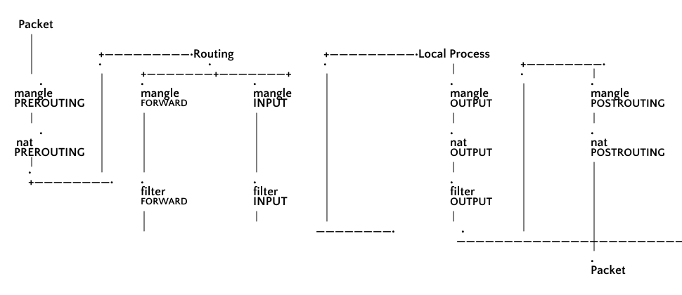 # Flush tables iptables -F iptables -X iptables -t nat -F iptables -t nat -X iptables -t mangle -F iptables -t mangle -X