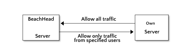 Suppose that the interface on the beachhead server is tap0 and that you would like to allow traffic from the beachhead server to your server for the users having the UID (from /etc/passwd) 0 (root), 1000 (some user), 1001 (some other user).