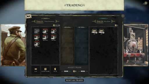 If you run out of money at a train depot and unable to purchase a train car, be aware that usually the depot also acts as a merchant all-in-one so you can click Train Inventory