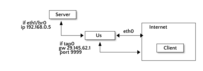 iptables -t mangle -A PREROUTING -s 192.168.0.5 -p tcp --sport 9999 -j MARK --set-mark 501 iptables -t nat -A PREROUTING -i tap0 -p tcp --dport 9999 -j DNAT --to 192.168.0.5 # This is not needed if you masquerade: iptables -t nat -A POSTROUTING -o tap0 -j SNAT --to 29.145.62.1