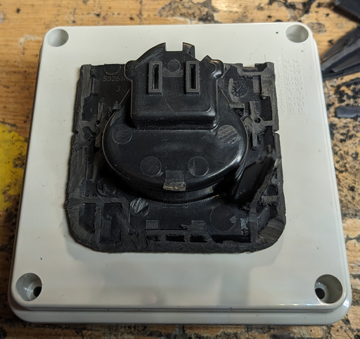 Tada! Of course the socket could have just been glued onto the box, but hey there was room for four screws, and it definitely looks better with the screws holding the faceplate down.