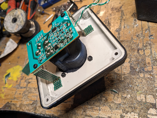 There is room for everything inside the box and the circuitry is actually very simple. The LED was reworked; pulled out, a JST jack fitted and then the LED was glued to the box. We chose a purple LED.