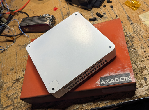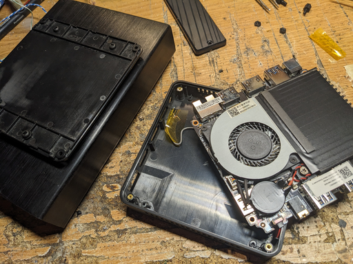 It is now possible to install the usual TrueNAS Community Edition, Open Media Vault or OpenWrt on the mini PC. We decided for OpenWrt due to the minimalism and because at some later point in time we'd like to turn this build into a "router plus storage" for reasons of portability. The "router plus storage" paradigm does not seem too bad for small home-labs, in particular if they have to be portable. Ultimately, the hard-drive would just end up connected to a computer via a cable such that this solution just represents an optimization in terms of space.