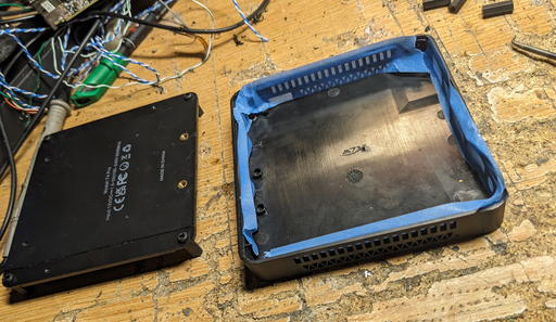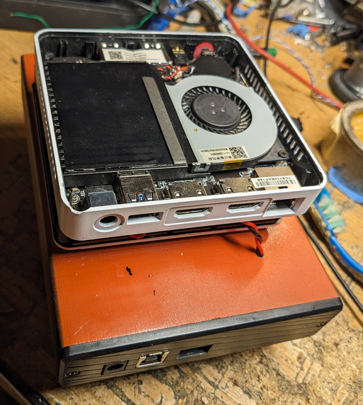 The next step is to provide power to the mini-PC which will be done by pulling power from the enclosure itself just like for the case fan and in the same spot. On the other end, the power will be supplied directly to the PCB by connecting wires to the power jack on the mini-PC motherboard.