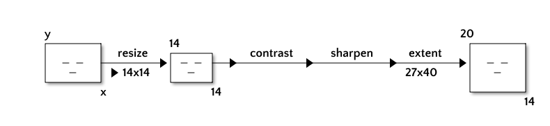 14x14 and stored to a temporary file.mogrify's -contrast switch a few times (in this case 5 times).14x20 or 27x40 depending on whether it is a display image (the filename ending with @2x) or a status bar image.An overview of the procedure is given in the representation below as a flow of filters.