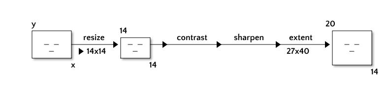 14x14 and stored to a temporary file.mogrify's -contrast switch a few times (in this case 5 times).14x20 or 27x40 depending on whether it is a display image (the filename ending with @2x) or a status bar image.An overview of the procedure is given in the representation below as a flow of filters.