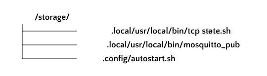Finally, the /storage/.config/autostart.sh script should be modified in order to start the /storage/.local/usr/local/bin/tcp-state.sh script when the arcade machine boots up. Just adding the following line at the top of autostart.sh should suffice: