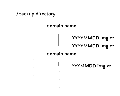 The script will create directories under the configured backup directory for all domain names and then inside those directories the backups will be created following the year-month-day format.