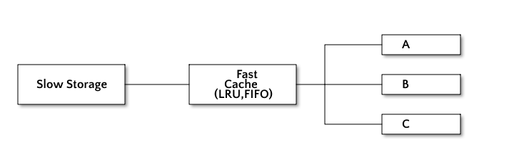 The slow storage can either be a faulty RAID controller, tape storage or any other cheap yet large storage container whilst the fast cache is considered an expensive yet small storage container such as RAM, NVME or SSDs.