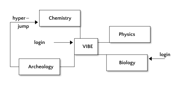 We have a star-shaped topology where each grid is self-standing and, due to the hypergrid architecture of OpenSim, avatars are able to "hyperjump" from grid to grid while still maintaining most of the Virtual World functionality. There are certain limitations, such as the infamous "Suitcase" problem when an avatar hyperjumps to a different grid but they are being addressed. Thus, each of the grids can be accessed individually by creating an account local to the grid or by creating an account on the greeting grid and hyper-jumping to the other grids.