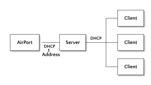 There are many options that you could choose when setting up AirPort this way. This is based on the fact that AirPort already contains a DHCP and a DNS server, meaning that some clients could be told to use AirPort instead of the server through DHCP. Also, one could load-balance the DNS traffic between the server and Airport.