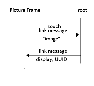 In order to work around the issue, images can be placed directly into the root of the build and link messages are used to update the image on the picture frame. The protocol that is used to change the texture on the picture frame could be sketched as the following:
